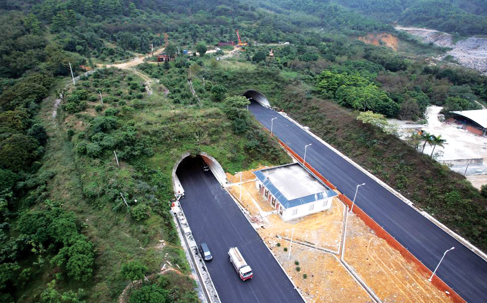 雙向六車(chē)道,單洞4821米,是目前廣東省最長(zhǎng)的高速公路隧道,也是廣東省采用全射流通風(fēng)最長(zhǎng)的高速公路隧道。