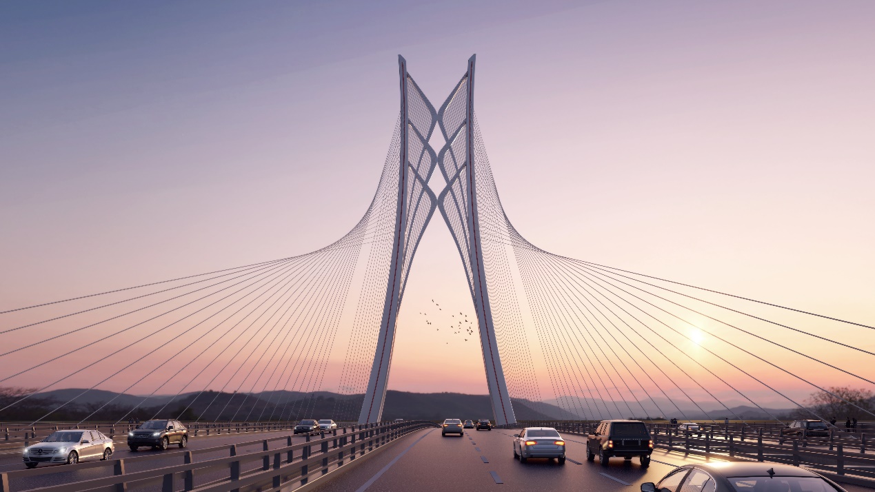 “東江門(mén)戶(hù),山水豐鏡”方案由我公司第四設(shè)計(jì)分院與何鏡堂建筑創(chuàng)作研究院團(tuán)隊(duì)共同完成。該方案經(jīng)過(guò)投票評(píng)選、專(zhuān)家評(píng)審等多輪評(píng)選,從全國(guó)20家單位、141個(gè)橋型方案中脫穎而出,榮獲跨東江橋型一等獎(jiǎng)。該方案設(shè)計(jì)提取了古體“豐”字為要素,意在打造城市門(mén)戶(hù)新地標(biāo),其造型如四通八達(dá)的脈絡(luò),亦如山巒疊影立于江上,蘊(yùn)含惠州山水并美的豐富意境。