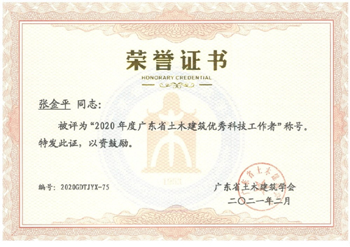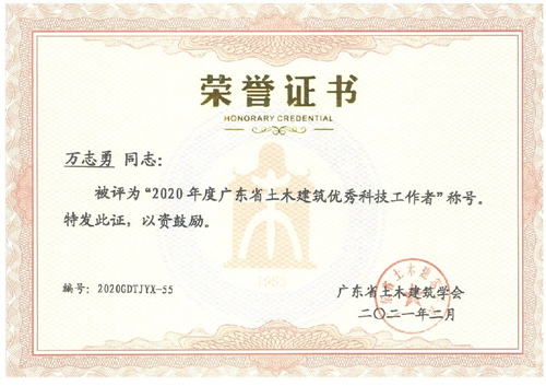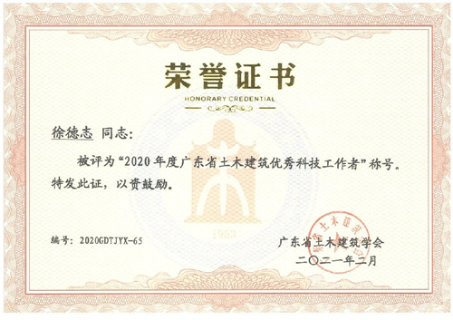 近日,公司被廣東省土木建筑學(xué)會(huì)授予“2020年度廣東省土木建筑科技創(chuàng)新先進(jìn)企業(yè)”榮譽(yù)稱號;公司副總工程師梁志勇和萬志勇、巖土勘察院院長張金平、第四設(shè)計(jì)院總工程師徐德志4人被評為“2020年度廣東省土木建筑優(yōu)秀科技工作者”。特此報(bào)喜。