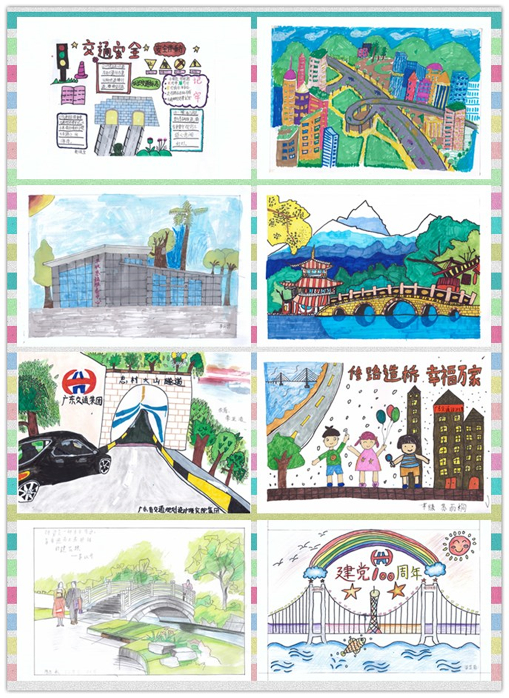 自從征集活動通知下發(fā)后,職工與孩子們積極響應(yīng)本次征集活動。從購買工具紙張、構(gòu)思起筆到涂色修改,父母與孩子全程配合,共同完成了一張張精彩的作品。國畫、水粉畫、蠟筆畫,每幅作品都是筆筆走心:5歲孩子稚嫩的畫筆描繪《南沙大橋的天空》、《一路筑夢》,栩栩如生的《鳳凰三橋》、《東華大橋》、《騰飛的高速》、《廣梧高速息村大山隧道》里有路和橋的連接、《通往幸福的橋》、《初升的太陽》、《空中交通》滿懷孩子們對幸福的期盼和對未來的暢想……