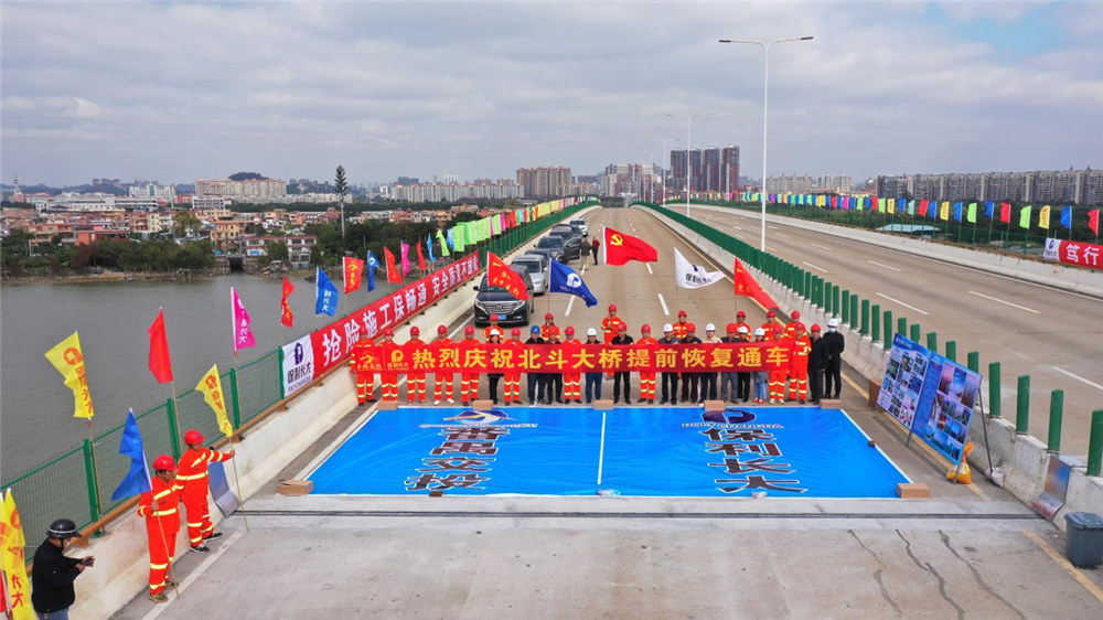 1月19日上午11時(shí),番禺北斗大橋提前3個(gè)月恢復(fù)通車。北斗大橋的重新開放,將大大減輕西樵大橋、沙灣大橋的交通壓力,提升番禺、南沙兩地居民出行的便利性。我集團(tuán)與下屬二級子公司盛翔檢測公司獲授“南粵應(yīng)急先鋒,北斗筑橋巧匠”錦旗及表揚(yáng)信。