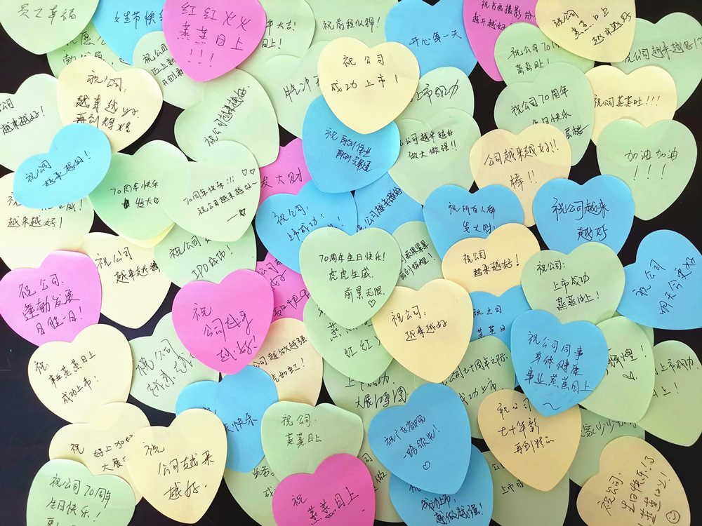 2022年,恰逢公司七十歲生日,公司工會結(jié)合“三八”婦女節(jié)主題開展了“巾幗獻祝福”活動?;顒蝇F(xiàn)場,女職工們將自己對公司七十歲生日的祝福親筆書寫在心形便簽紙上,并由衷地祝愿公司業(yè)務(wù)蒸蒸日上,發(fā)展越來越好。公司工會在活動現(xiàn)場還給女職工們準備了節(jié)日專屬小禮物,以此傳遞對她們的美好祝福。
