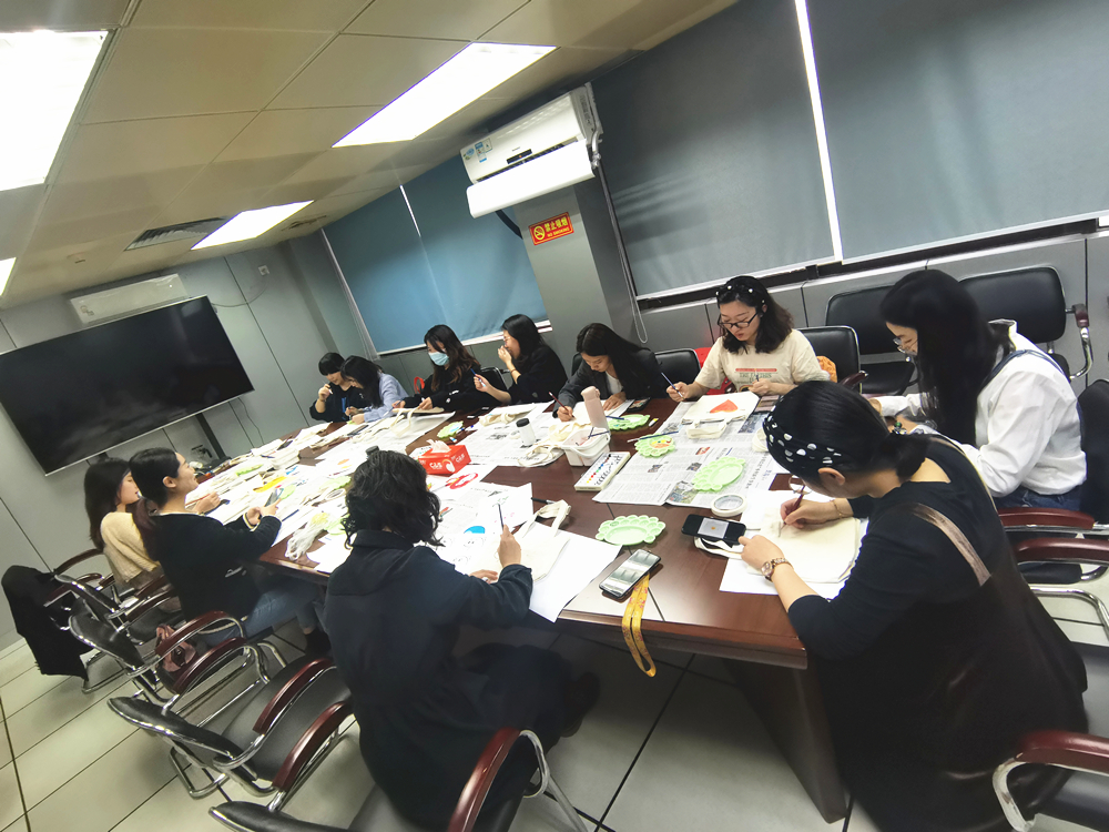 為陶冶職工藝術(shù)情操,公司工會、員工書畫攝影協(xié)會聯(lián)合開展了布藝包彩繪DIY活動。大家在工作人員的引導(dǎo)下,紛紛尋找到了自己想要描摹的圖案,用畫筆在布藝包上興致勃勃地繪制創(chuàng)作。隨著一款款精致漂亮的布藝包彩繪順利完成,大家開心地舉起自己的作品拍照,一起分享成果。