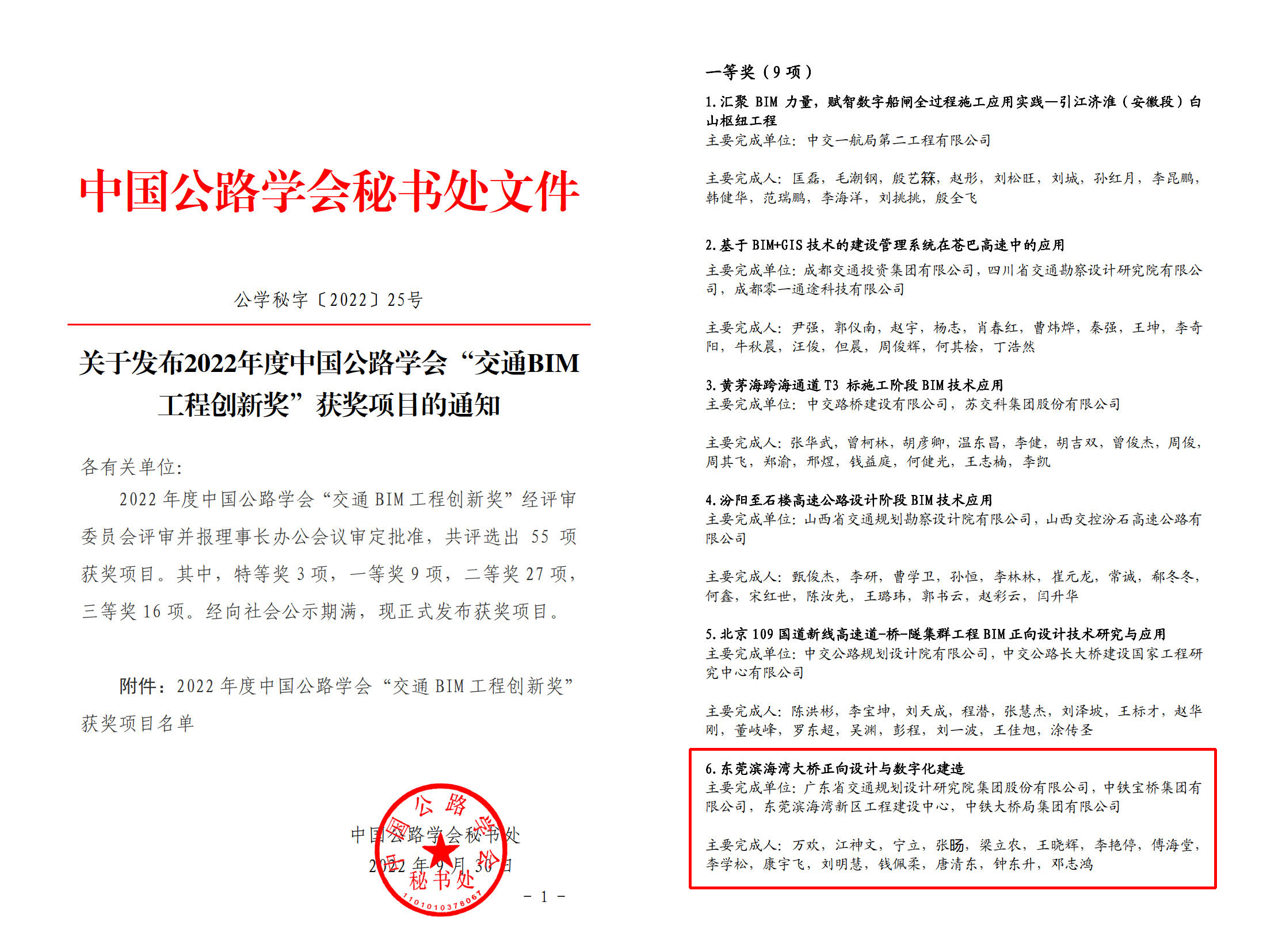近日,2022年度中國公路學(xué)會(huì)“交通BIM工程創(chuàng)新獎(jiǎng)”評審結(jié)果公布。經(jīng)專家初審和復(fù)審答辯,集團(tuán)《濱海灣大橋正向設(shè)計(jì)與數(shù)字化建造》項(xiàng)目從全國四大交通領(lǐng)域200余個(gè)參評項(xiàng)目的激烈競爭中脫穎而出,榮獲一等獎(jiǎng),是一等獎(jiǎng)中唯一的市政項(xiàng)目。自去年《黃茅??绾Mǖ拦こ?span>A1標(biāo)設(shè)計(jì)BIM技術(shù)研究》項(xiàng)目獲獎(jiǎng)后,集團(tuán)再次榮獲該獎(jiǎng)項(xiàng)一等獎(jiǎng)。