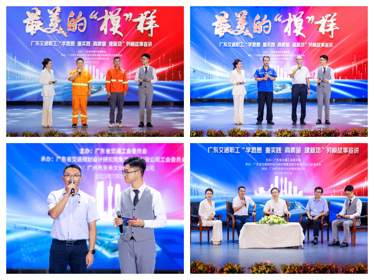 宣講活動通過鋪路歌、標燈情、工匠心、鐵軍魂等四個篇章,進行了鋪路石精神、航標燈精神、工匠精神、鐵軍精神等代表人物故事分享,同時穿插廣東交通職工原創(chuàng)文化作品——敘事朗誦《師傅》、舞蹈《領(lǐng)航》、情景舞蹈《絲路回響》、情景劇《天路》等舞臺演繹,講好勞模故事、勞動故事、工匠故事,弘揚勞模精神、勞動精神、工匠精神,提煉廣東交通人“精神譜系”,凝聚起廣東交通系統(tǒng)職工的智慧和力量,當好新時代的主人翁,爭做新征程的奮斗者,奮力譜寫交通強省、綠美交通建設(shè)新篇。