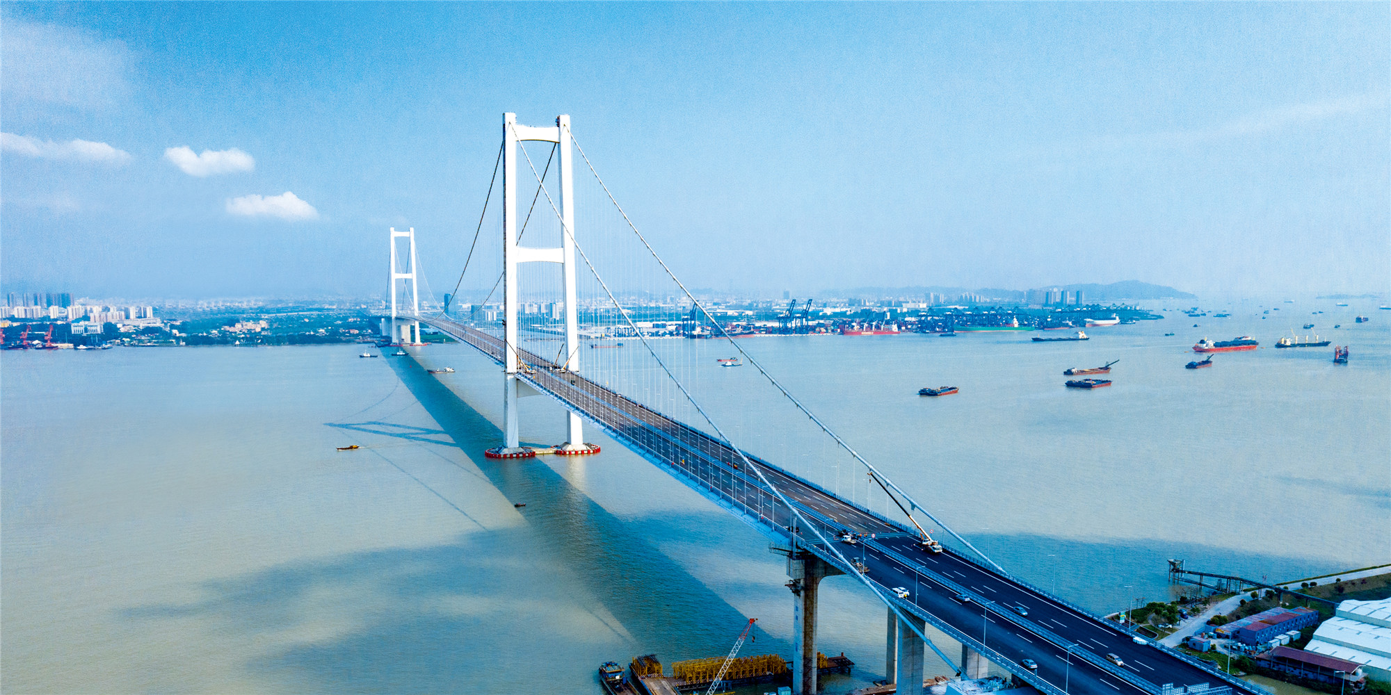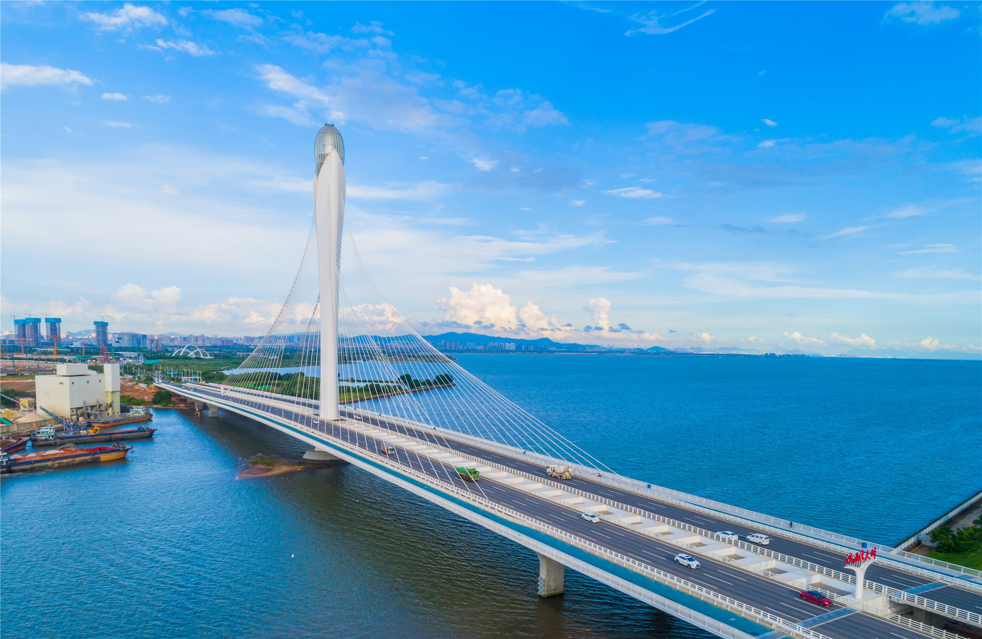南沙大橋——在大小、高低的呼應中,鋼筋水泥化作了一道優(yōu)雅而堅定的天際線,騰飛而起。