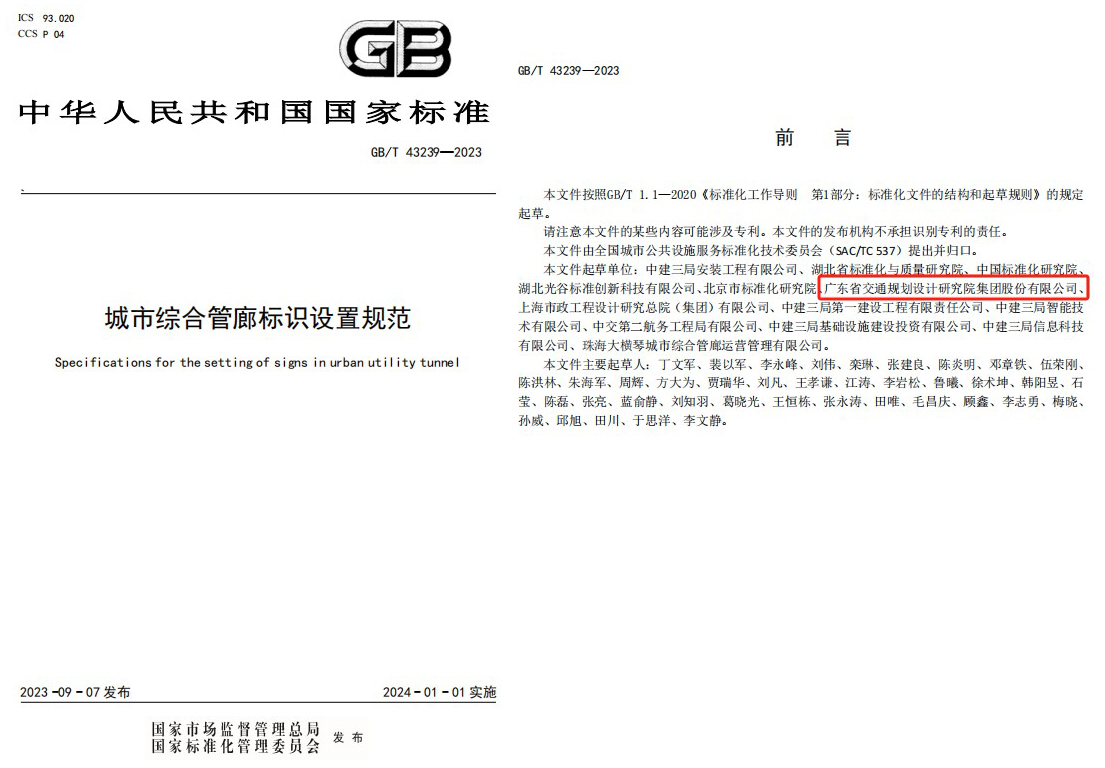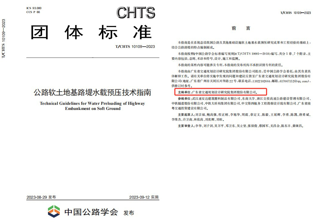 近日,公司參編的國家標準《城市綜合管廊標識設(shè)置規(guī)范》(GB/T 43239—2023)以及主編的中國公路學(xué)會團體標準《公路軟土地基路堤水載預(yù)壓技術(shù)指南》(T/CHTS10109—2023)兩項標準成果正式發(fā)布。