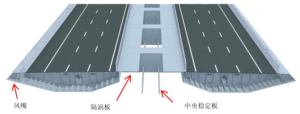 中引橋抗風(fēng):針對(duì)百米級(jí)連續(xù)鋼箱梁結(jié)構(gòu)固有頻率高、渦振控制難的問題,研發(fā)了“橫向連接箱 + 電渦流TMD”的渦振混合控制技術(shù),實(shí)現(xiàn)了振動(dòng)加速度<1m/s2的控制目標(biāo)。相比氣動(dòng)措施,該方案可顯著減少工程實(shí)施難度與造價(jià)。