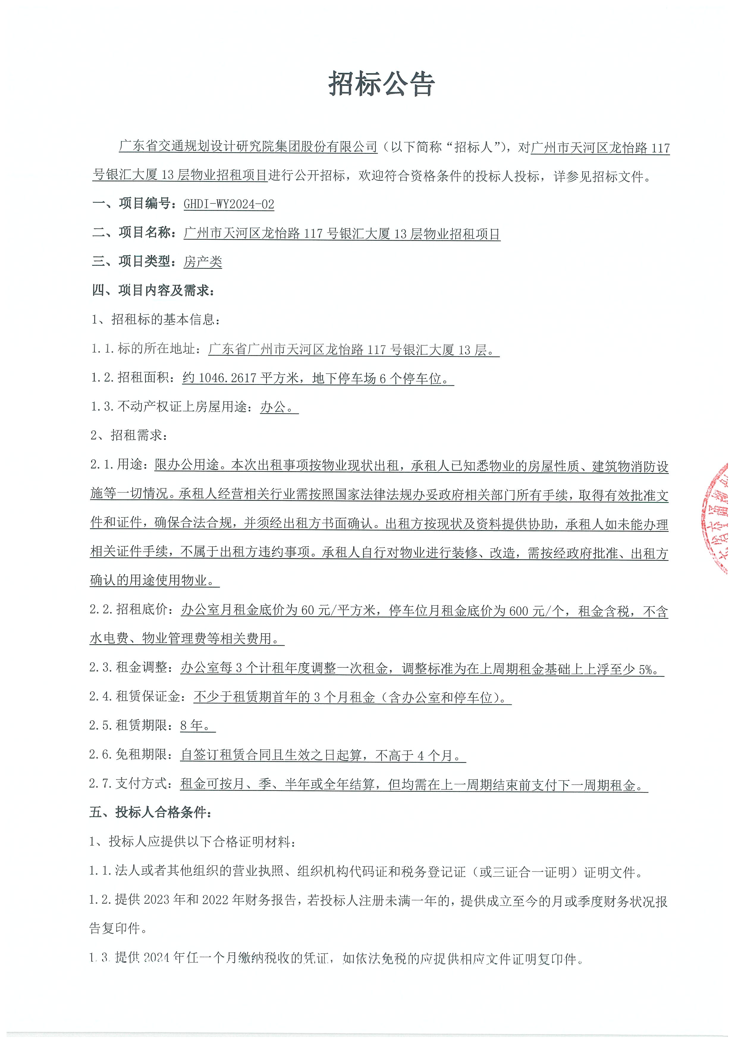 廣州市天河區(qū)龍怡路117號(hào)銀匯大廈13層物業(yè)招租項(xiàng)目招標(biāo)公告