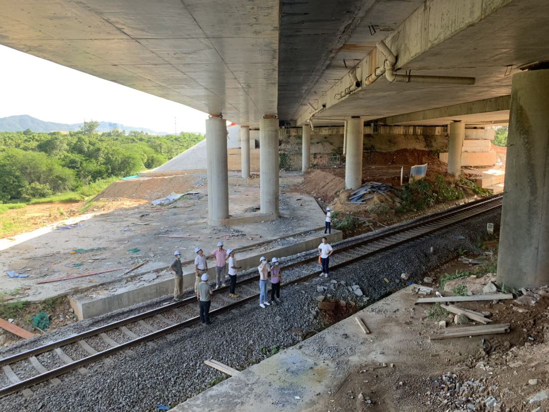 此次設(shè)計回訪參觀了陽陽鐵路跨線橋及T1標(biāo)的預(yù)制梁現(xiàn)場、天橋拆除現(xiàn)場。陽陽鐵路跨線橋由于橋下鐵路與該橋斜交,為滿足鐵路行車要求,新舊橋采用連續(xù)箱梁不等跨拼接,拼接段采用高性能砼。作為項目的技術(shù)難點工程,不等跨拼接結(jié)構(gòu)受力復(fù)雜,施工難度大。在參觀現(xiàn)場,回訪團(tuán)隊與業(yè)主單位、施工單位就拼接帶高性能砼施工、老橋支座頂升、護(hù)欄改造、上跨鐵路橋等關(guān)鍵技術(shù),進(jìn)行了深入溝通和探討。隨后,大家前往預(yù)制梁場進(jìn)行參觀。作為平原區(qū)改擴(kuò)建項目,本項目的橋梁以中小跨徑為主,梁板類型較多,有5m、8m、10m、13m、16m、20m空心板梁以及35m小箱梁共7種類型。項目負(fù)責(zé)人和設(shè)計代表對于現(xiàn)場每一種梁板類型,詳細(xì)講解了設(shè)計控制的難點和要點,并聽取了業(yè)主和施工單位反饋的問題和意見,結(jié)合現(xiàn)場鋼筋布置答疑解惑,為后續(xù)同類橋梁設(shè)計積累了經(jīng)驗。