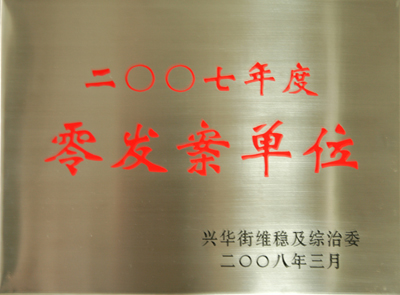 2007年,在公司經(jīng)營班子的正確領(lǐng)導(dǎo)和全體員工的共同努力下,我公司狠抓治安綜合治理各項(xiàng)工作,全年未發(fā)生任何綜治案件和事故,近日,被廣州市天河區(qū)興華街道辦事處評為“2007年度零發(fā)案單位”,特此報(bào)喜。