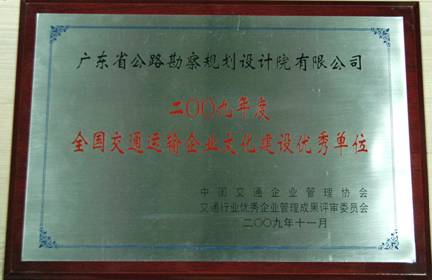 日前,在鄭州召開的第四屆全國交通運輸企業(yè)文化建設論壇上,我公司被授予2009年度“全國交通運輸企業(yè)文化建設優(yōu)秀單位”榮譽稱號。 此次表彰,由中國交通企業(yè)管理協(xié)會和交通行業(yè)優(yōu)秀企業(yè)管理成果評審委員會發(fā)起和評審,全國共有123個單位獲獎,其中交通規(guī)劃勘察設計單位5家。