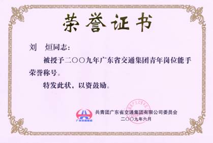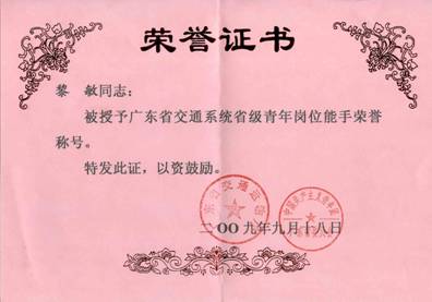 日前,公司團總支收到喜訊,第三路橋設(shè)計部黎敏同志榮獲“廣東省交通系統(tǒng)省級青年崗位能手”榮譽稱號,第二路橋設(shè)計部劉烜同志榮獲“2009年廣東省交通集團青年崗位能手”榮譽稱號。其中,“廣東省交通系統(tǒng)省級青年崗位能手”由省交通運輸廳與團省委聯(lián)合評選。 謹向以上兩位同志表示祝賀!希望廣大團員青年以他們?yōu)榘駱?,愛崗敬業(yè),樂于奉獻,立足本職工作,爭當“崗位能手”。