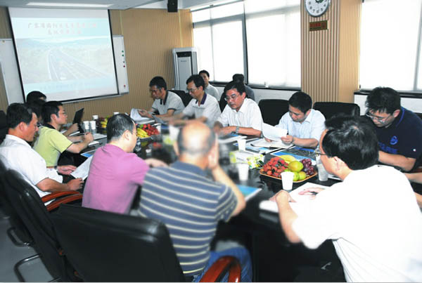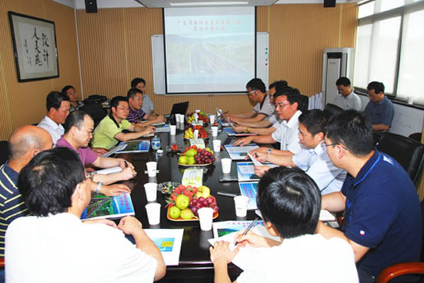 2013年6月26日,省交通運輸廳賈紹明副廳長率廳基建處黃成造處長、省交通運輸工程造價管理站吳偉彬站長以及南粵交通投資有限公司有關(guān)領(lǐng)導(dǎo)一行來我公司調(diào)研指導(dǎo)工作,會議主要聽取了揭惠高速公路設(shè)計總體方案的匯報。匯報結(jié)束后,賈紹明副廳長對深入貫徹“安全、舒適、環(huán)保、和諧”的設(shè)計新理念以及通過優(yōu)化設(shè)計降低工程造價等方面提出了新希望和新要求,并鼓勵我公司牢牢把握交通建設(shè)新一輪大發(fā)展的機遇,為改善地區(qū)發(fā)展不平衡的交通現(xiàn)狀貢獻力量。