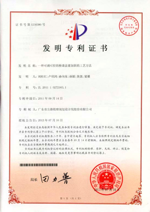 1、“一種可調(diào)可控的橋墩蓋梁加固的工藝方法”,被授予發(fā)明專利權(quán)。