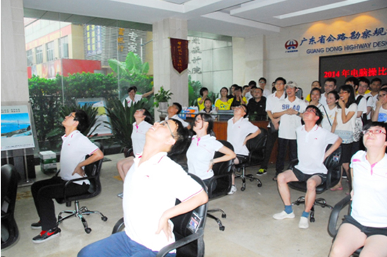 2014年6月20日下午,公司在1號樓大堂舉辦了一場別開生面的電腦操比賽。經(jīng)過激烈的角逐,第一工會小組和監(jiān)理公司工會技壓群雄,榮獲本屆比賽的冠軍。 電腦操比賽是針對辦公一族的一種便捷的健身操運動,該活動是公司2014年“快樂工作,快樂生活”主題文化實踐活動之一,旨在關(guān)心員工身體健康,推進(jìn)辦公室保健。在公司范圍推廣健身操尚屬首次,經(jīng)過一個多月的推廣,該活動受到了廣大員工的積極參與和支持。