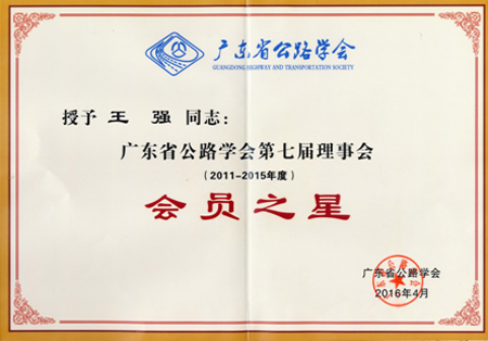 公司副總工程師王強(qiáng)同志榮獲“廣東省公路學(xué)會(huì)第七屆理事會(huì)會(huì)員之星”稱號(hào),并在近日召開(kāi)的廣東省公路學(xué)會(huì)第八屆會(huì)員代表大會(huì)暨2016年年會(huì)上獲得了表彰。特此祝賀!