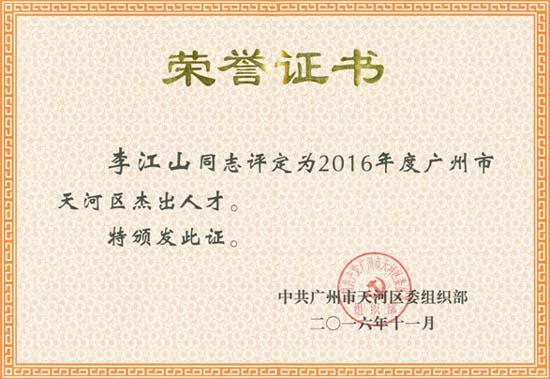 近幾年來,在李江山董事長的帶領(lǐng)下,公司董事會團(tuán)結(jié)和帶領(lǐng)經(jīng)營班子,堅(jiān)持以改革促發(fā)展,以創(chuàng)新求效益,內(nèi)抓管理,外樹形象,優(yōu)質(zhì)高效地完成了廣梧、廣賀、揭普、佛開高速擴(kuò)建、濟(jì)廣、大廣、江羅、包茂、潮惠、云湛高速、虎門二橋、江順大橋等國家級和省級重大交通項(xiàng)目的勘察設(shè)計(jì)任務(wù),為廣東乃至全國的交通事業(yè)發(fā)展做出了突出貢獻(xiàn),公司經(jīng)營業(yè)績和利潤水平穩(wěn)步提升,社會創(chuàng)稅貢獻(xiàn)逐年增長。為表彰其在公司發(fā)展和利稅創(chuàng)收方面取得的突出成績,經(jīng)中共廣州市天河區(qū)委組織部評審,李江山董事長被授予“2016年度廣州市天河區(qū)杰出人才”稱號,這既是對李江山董事長個人的充分肯定,也是天河區(qū)尊重和愛護(hù)高級管理人才、實(shí)施"人才興區(qū)"的具體體現(xiàn)。 特此祝賀!