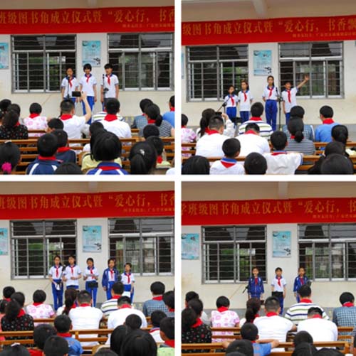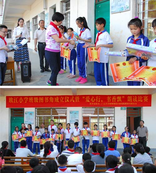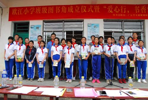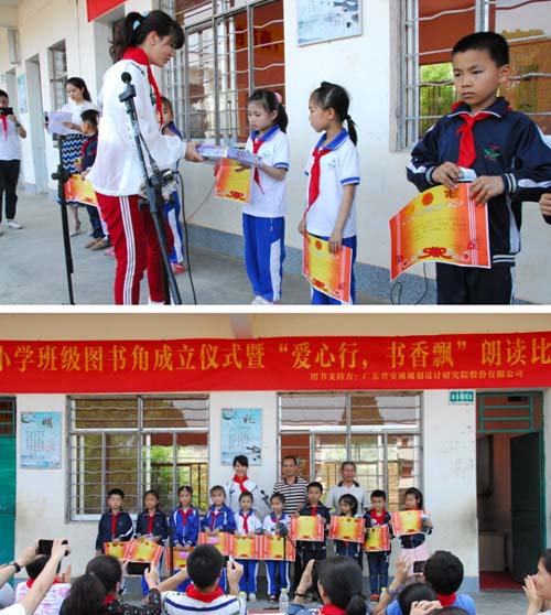 搭建一個(gè)“圖書角”,分享一座“精神糧倉(cāng)”——第二黨支部黨員同志們繼續(xù)滿懷著愛(ài)心和熱情,踐行他們服務(wù)山區(qū)留守兒童的創(chuàng)想。2017年5月5日,第二黨支部黨員同志們歷經(jīng)五小時(shí)車程,跨越三百里路程,到達(dá)河源龍川黃布鎮(zhèn)歐江小學(xué),走進(jìn)山區(qū)校園,開展捐贈(zèng)“愛(ài)心圖書角”活動(dòng)。這次活動(dòng)中,第二黨支部為歐江小學(xué)9個(gè)班級(jí)各創(chuàng)建了圖書角,捐贈(zèng)價(jià)值接近兩萬(wàn)元。小小的圖書角,裝載的不僅是書籍和知識(shí),更是支部黨員同志們扶貧助困、捐資助學(xué)的愛(ài)心,以及他們對(duì)山區(qū)兒童健康成長(zhǎng)的熱切期盼。