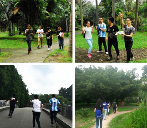 活動(dòng)計(jì)時(shí)開(kāi)始,各隊(duì)根據(jù)分發(fā)的地圖與任務(wù)卡在園區(qū)尋找預(yù)先設(shè)置好的打卡點(diǎn),完成每個(gè)點(diǎn)設(shè)置的任務(wù)。活動(dòng)以完成所有打卡點(diǎn)所用時(shí)間的長(zhǎng)短計(jì)算成績(jī),時(shí)間越短排名越高。打卡點(diǎn)的設(shè)置范圍相當(dāng)廣泛,各隊(duì)隊(duì)員需要選擇合理的路線,制定高效的策略,以奔跑的方式盡可能快速尋找到打卡點(diǎn),并以團(tuán)隊(duì)合作的方式完成打卡任務(wù)?;顒?dòng)富于趣味性、競(jìng)爭(zhēng)性與活力性,考驗(yàn)隊(duì)員們團(tuán)隊(duì)合作的能力、戶外辨向的能力、選擇策略的能力以及奔跑的體能。各隊(duì)隊(duì)員在活動(dòng)過(guò)程中展現(xiàn)了省院?jiǎn)T工的活力風(fēng)采。