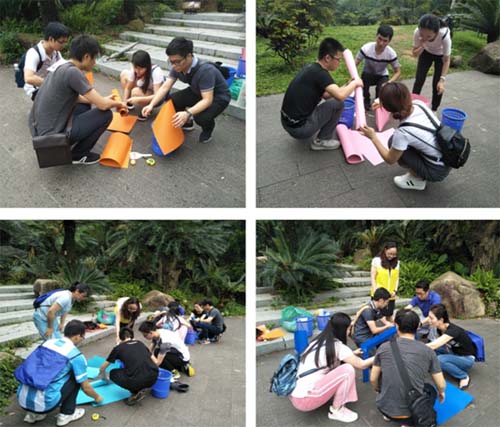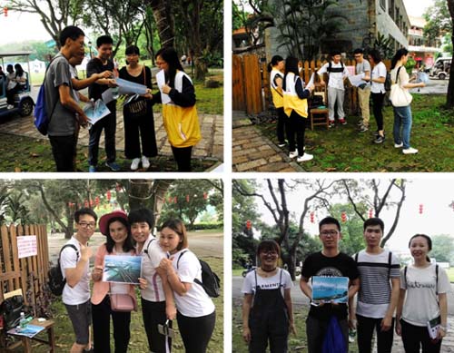 本次戶外拓展活動(dòng)共吸引了公司各工會(huì)小組三十余人報(bào)名參加,活動(dòng)分7隊(duì)進(jìn)行。按任務(wù)抽簽分為三類:狩獵組(共1組,除完成共同任務(wù)外,需要追捕并撕下任意五組各一張名牌),擺拍組(共3組,除完成共同任務(wù)外,需要按圖片提示找到園區(qū)的五個(gè)指定地點(diǎn)并按指定動(dòng)作擺拍),尋寶組(共3組,除完成共同任務(wù)外,需要尋找隱藏在園區(qū)不同地點(diǎn)的五個(gè)帶有公司圖標(biāo)的旗子)。