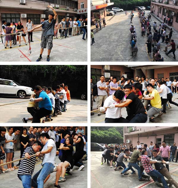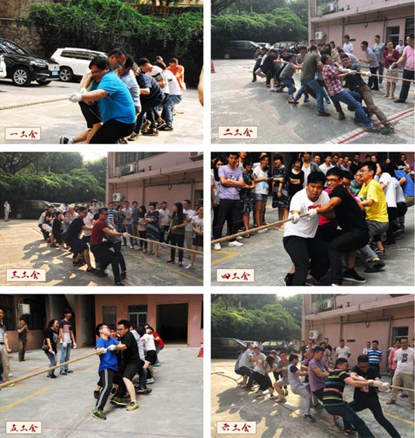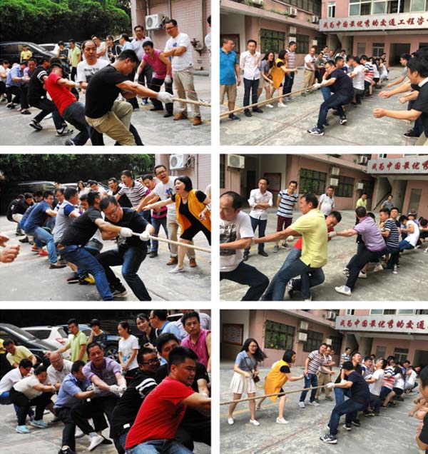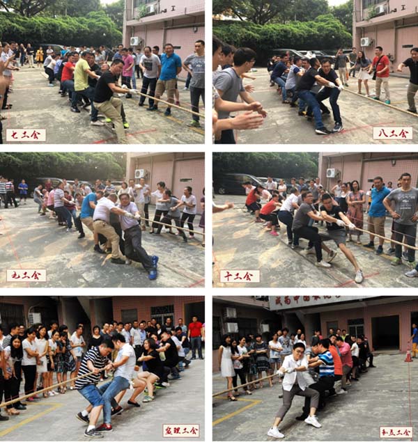 在現(xiàn)場的陣陣喝彩聲中比賽的哨聲響起。參賽的隊員們都緊握長繩卯足了勁拼命往后拉,場邊未參賽的員工也自發(fā)組成啦啦隊為場上的隊員們吶喊助威,“一…二…加油!”的口號聲此起彼伏,高亢有力。各小組都派出了最強的比賽陣容,上下一心,劍指冠軍。每一次的勝負,都需經(jīng)過幾番力量與士氣的角逐才能見分曉,現(xiàn)場激烈的比賽高潮迭起。