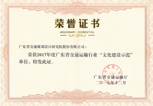 多年來,公司按照省交通運輸廳“用心服務,暢享交通”理念和公司“團隊共進、競爭共贏、創(chuàng)新求精、奉獻求真”的核心價值觀,堅持以人為本、注重參與、創(chuàng)新形式、與時俱進的工作思路,以黨團工會為載體,積極創(chuàng)新、銳意進取,不斷完善文化建設機制,扎實開展各項文化建設活動,多次獲評為“全國交通運輸企業(yè)文化建設卓越單位”、“廣東省交通運輸系統(tǒng)先進職工之家”、2017年公司還榮獲了“廣東省五一勞動獎狀”稱號。