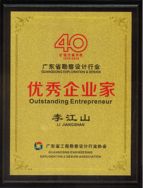 在廣東省工程勘察設(shè)計(jì)行業(yè)協(xié)會(huì)舉辦的紀(jì)念改革開(kāi)放40周年廣東省勘察設(shè)計(jì)行業(yè)表彰活動(dòng)中,我公司董事長(zhǎng)李江山先生榮獲廣東省勘察設(shè)計(jì)行業(yè)優(yōu)秀企業(yè)家稱號(hào),總工程師梁立農(nóng)先生榮獲廣東省杰出設(shè)計(jì)師稱號(hào)。 特此報(bào)喜!