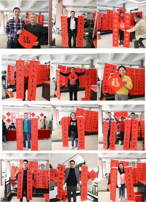 活動現(xiàn)場翰墨飄香,前來領(lǐng)取春聯(lián)的職工絡(luò)繹不絕?,F(xiàn)場有事先寫好的春聯(lián)、“?!弊?,向職工發(fā)放;職工也可自選或自擬春聯(lián)內(nèi)容,由書法愛好者現(xiàn)場書寫?;鸺t鮮艷的春聯(lián)承載著職工們揮別狗年、喜迎豬歲的美好愿景。大家手捧著同事們親手書寫的一副副精美的春聯(lián)、一個個喜慶的福字,愉悅之情溢于言表,為新春佳節(jié)增添了一份別樣的喜氣。本次活動送出春聯(lián)與“福”字共300余份。