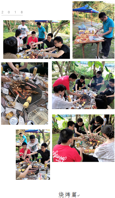 男士們負責鋪炭生火,女士們負責清洗瓜果、串連竹簽,相互配合十分默契。不一會兒,燒烤場中已是炊煙裊裊,大伙兒迫不及待地圍坐在一起,把串好的食物放到爐上。霎時間,整個燒烤場都飄逸著誘人的香味。有些同事是燒烤達人,有些同事則是菜鳥小白,彼此互幫互助,借鑒學習燒烤經(jīng)驗,更進一步推動了新老員工之間的溝通交流。歡聲笑語隨著縷縷炊煙縈繞在半空,使大家在緊張的工作之余得以放松心情,同時也使大家的關(guān)系變得更加融洽。
