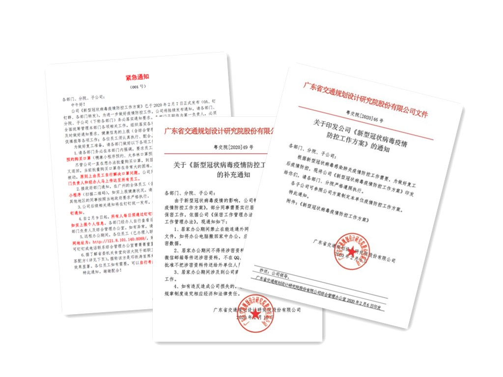 疫情當(dāng)前,公司積極響應(yīng)黨中央和各級(jí)政府號(hào)召,始終堅(jiān)持疫情防控與生產(chǎn)經(jīng)營(yíng)兩不誤,每一位廣東交通院人將始終以飽滿的精神狀態(tài)、正確的防疫意識(shí)、始終如一的專業(yè)素養(yǎng)和奉獻(xiàn)精神,全力戰(zhàn)“疫”,持續(xù)為顧客提供優(yōu)質(zhì)高效服務(wù)。