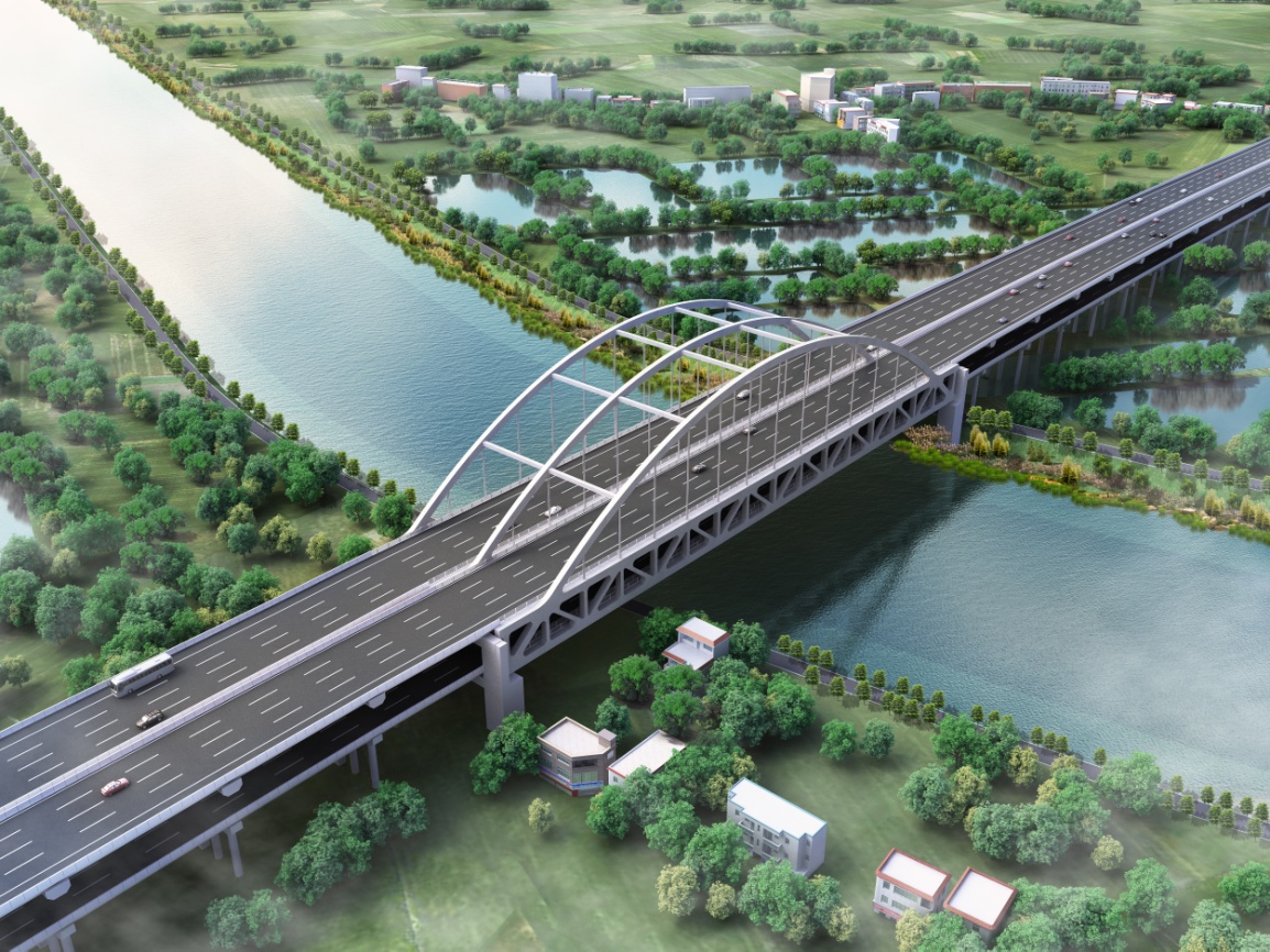 黃沙瀝大橋采用了高速公路與民古路合建的雙層橋梁,上下層均為雙向八車道標(biāo)準(zhǔn)。主橋?yàn)?/span>192m簡(jiǎn)支下承式鋼桁梁-柔性拱,采用三主拱、三主桁方案,矢跨比為1/5.25;拱軸線采用懸鏈線,拱軸系數(shù)1.5。主桁橫向中心間距為2×22.25m,橋梁全寬46m。主橋主桁立面采用帶有豎桿的華倫式桁架,桁架節(jié)間距12m,桁高10m,高跨比1/19.2。