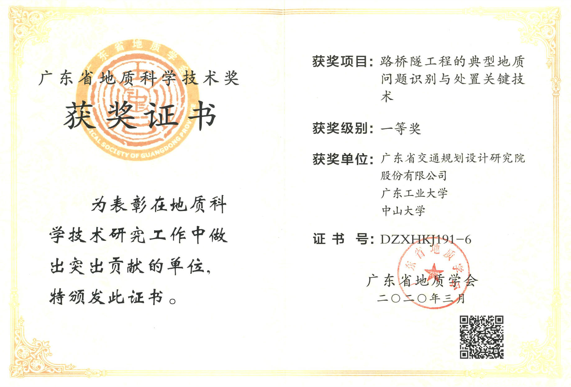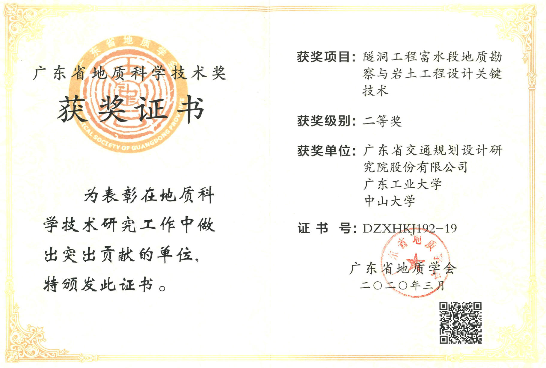 近日,公司在“2019年度廣東省地質(zhì)學(xué)會(huì)科學(xué)技術(shù)獎(jiǎng)”評(píng)選中喜創(chuàng)佳績。公司作為第一單位共有兩個(gè)項(xiàng)目獲獎(jiǎng),其中“路橋隧工程的典型地質(zhì)問題識(shí)別與處置關(guān)鍵技術(shù)”榮獲一等獎(jiǎng),“隧洞工程富水段地質(zhì)勘察與巖土工程設(shè)計(jì)關(guān)鍵技術(shù)”榮獲二等獎(jiǎng)。兩個(gè)獲獎(jiǎng)項(xiàng)目的承擔(dān)部門均為巖土勘察分院。